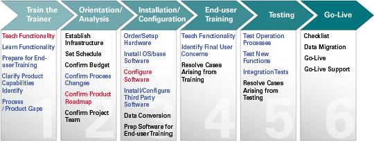 We have developed a proven process for project implementations that minimize time to delivery, lower total cost of ownership for our clients and mitigate risk. Our unique project methodology below reflects the project execution strategy that we follow for complex software engagements. Our approach is based on execution phases and enablement tracks which address the commercial, operational and change management aspects of a complex and mission critical software implementation projects.